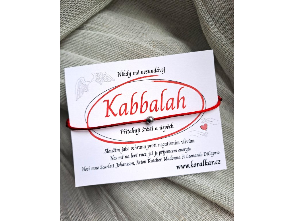 Náramek Kabbalah má vždy červenou barvu, jež má chránit před negativními vlivy dle dle prastarého mystického učení Kabala.