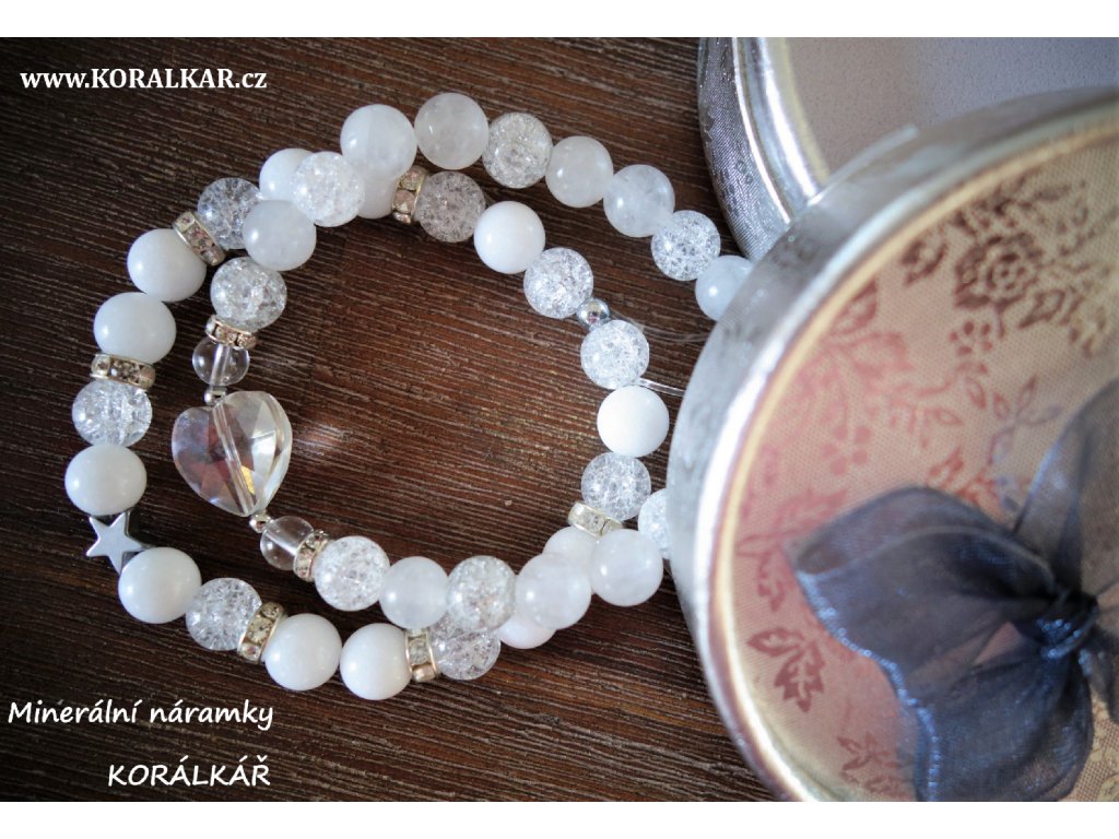 bílý jadeit v lesku, šatonové rondelky, práskaný křišťál - pozor křehký perličky chirurgická ocel, hematit hvězdička platina